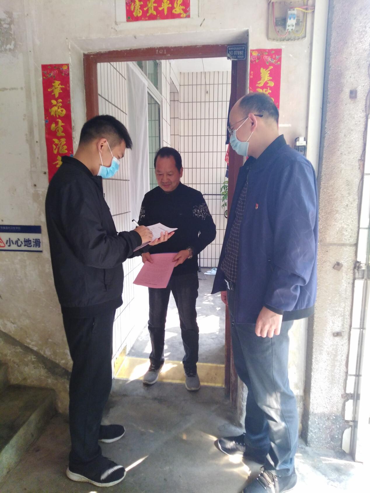 黨員陳冬冬、陳明迎同志排查、登記住戶信息