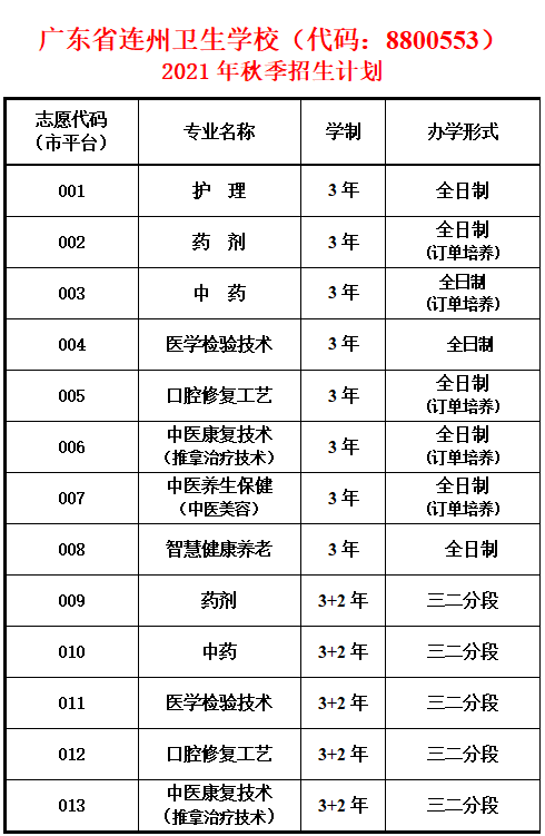 學校的全稱為“廣東省連州衛生學校”,招生代碼為8800553。