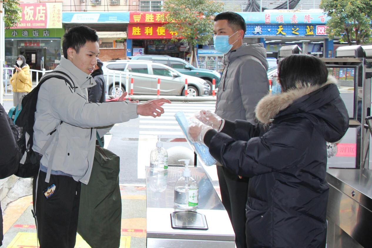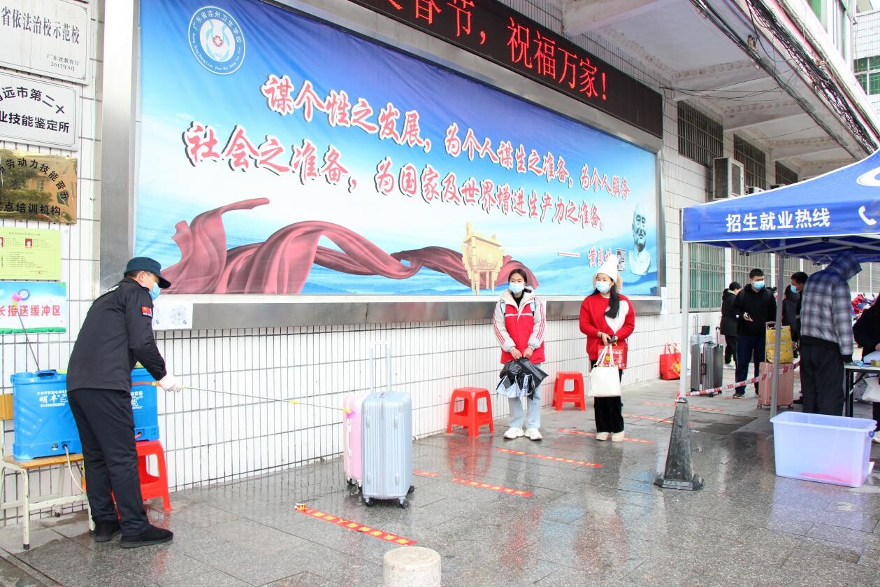 開(kāi)學(xué)期間,學(xué)校組織了96名黨員教師組成志愿服務(wù)隊(duì),參與疫情防控志愿服務(wù)。2月13、17、21、22日校門口設(shè)立疫情防控通道,黨員教師志愿者在校門口維持秩序、測(cè)溫、查看粵康碼、行程卡;詢問(wèn)學(xué)生有無(wú)不適,指引清遠(yuǎn)市外學(xué)生填寫新冠肺炎流行病學(xué)調(diào)查問(wèn)卷;對(duì)學(xué)生行李進(jìn)行消殺,指引學(xué)生進(jìn)行手部消毒后才進(jìn)入學(xué)校,切實(shí)把好入校第一關(guān),服務(wù)學(xué)生返校。
