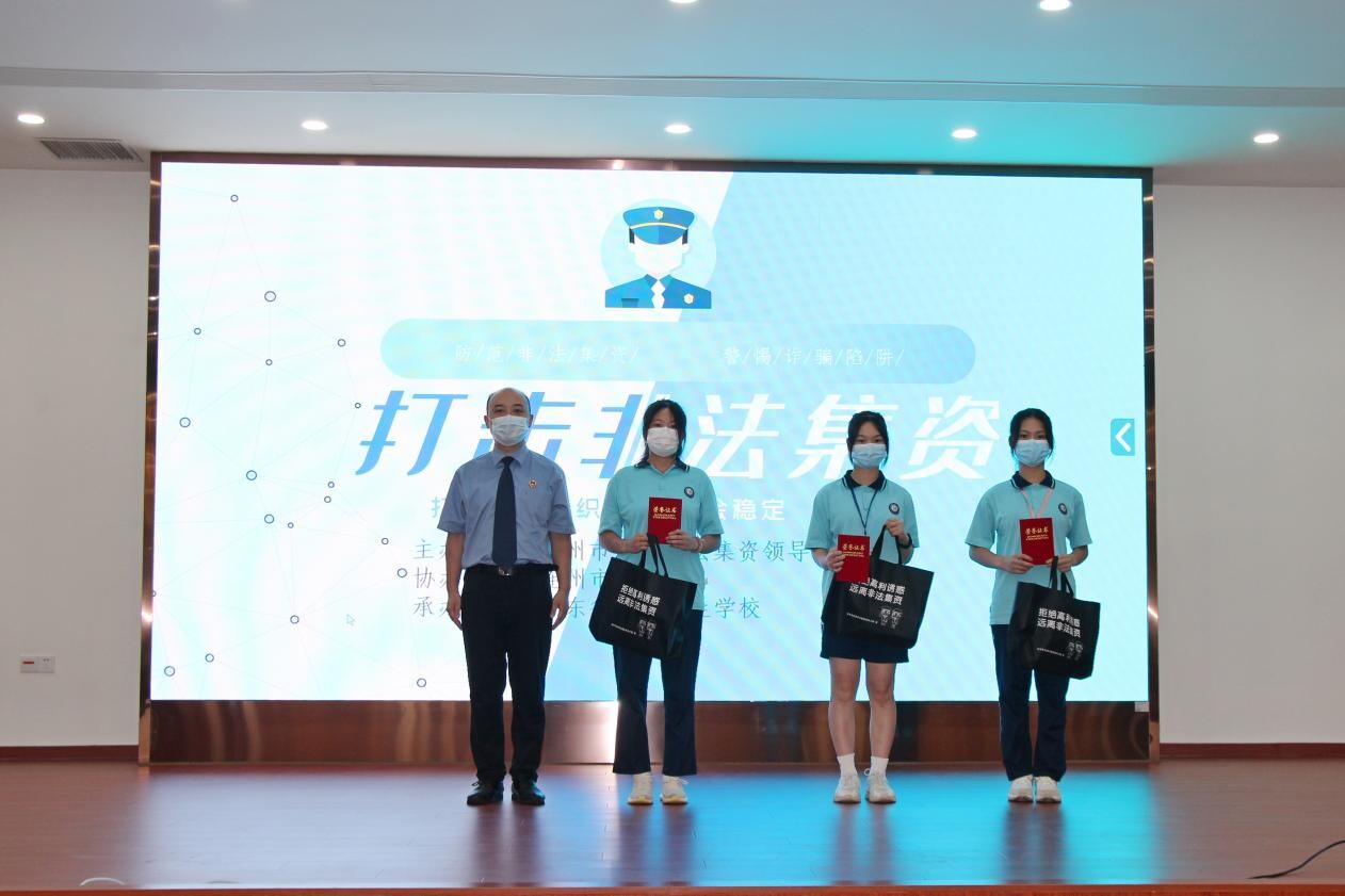 為了營造良好的防范非法金融活動輿論氛圍,提高學生對非法金融活動的認識和抵制能力,2022年6月29日,由連州市處置非法集資領導小組主辦、連州市教育局協辦的2022年防范非法集資宣傳月活動暨“守好錢袋子·護好幸福家”主題繪畫比賽頒獎儀式在連州衛生學校舉行。連州市檢察院黨組成員、副檢察長、連州衛校法治副校長潘文杰、連州市教育局董繩祥主任、連州市人民法院法官助理梁舒恬、連州衛校副校長唐英輝出席活動。