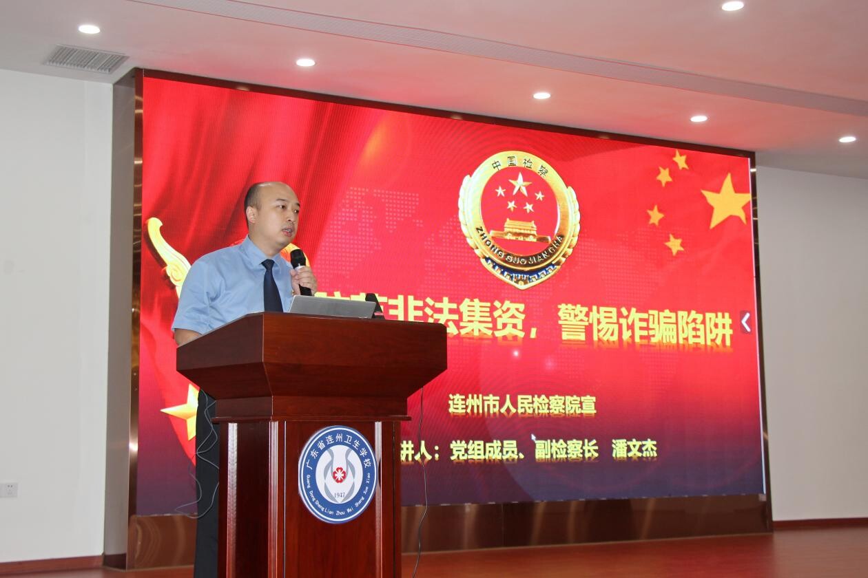 “防范非法集資,警惕詐騙陷阱。”連州市檢察院黨組成員、副檢察長、連州衛校法治副校長潘文杰在集資詐騙罪的基本概念、集資詐騙罪的客觀要件、集資詐騙罪的體現以及案例分析四個方面為同學們詳細地闡述了集資詐騙罪的相關內容。并提醒我們在生活中參與集資的時候要注意辨識合法融資與非法集資,依法理性開展金融投資活動。