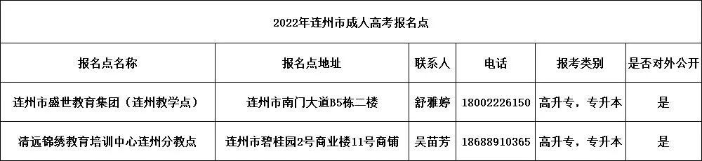 3、現場審核報名地點:連州市盛世教育集團(連州教學點)和清遠錦繡教育培訓中心連州分教點。具體地點如下: