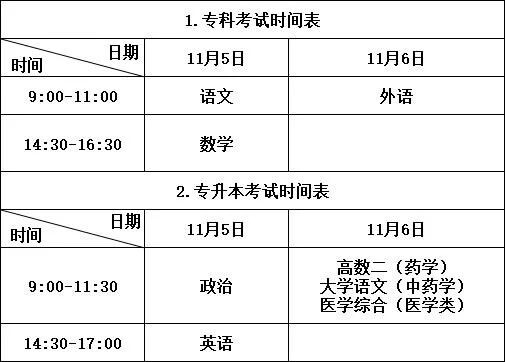 4、考試時間: 2022年11月5日至6日統考,考試科目安排如下: