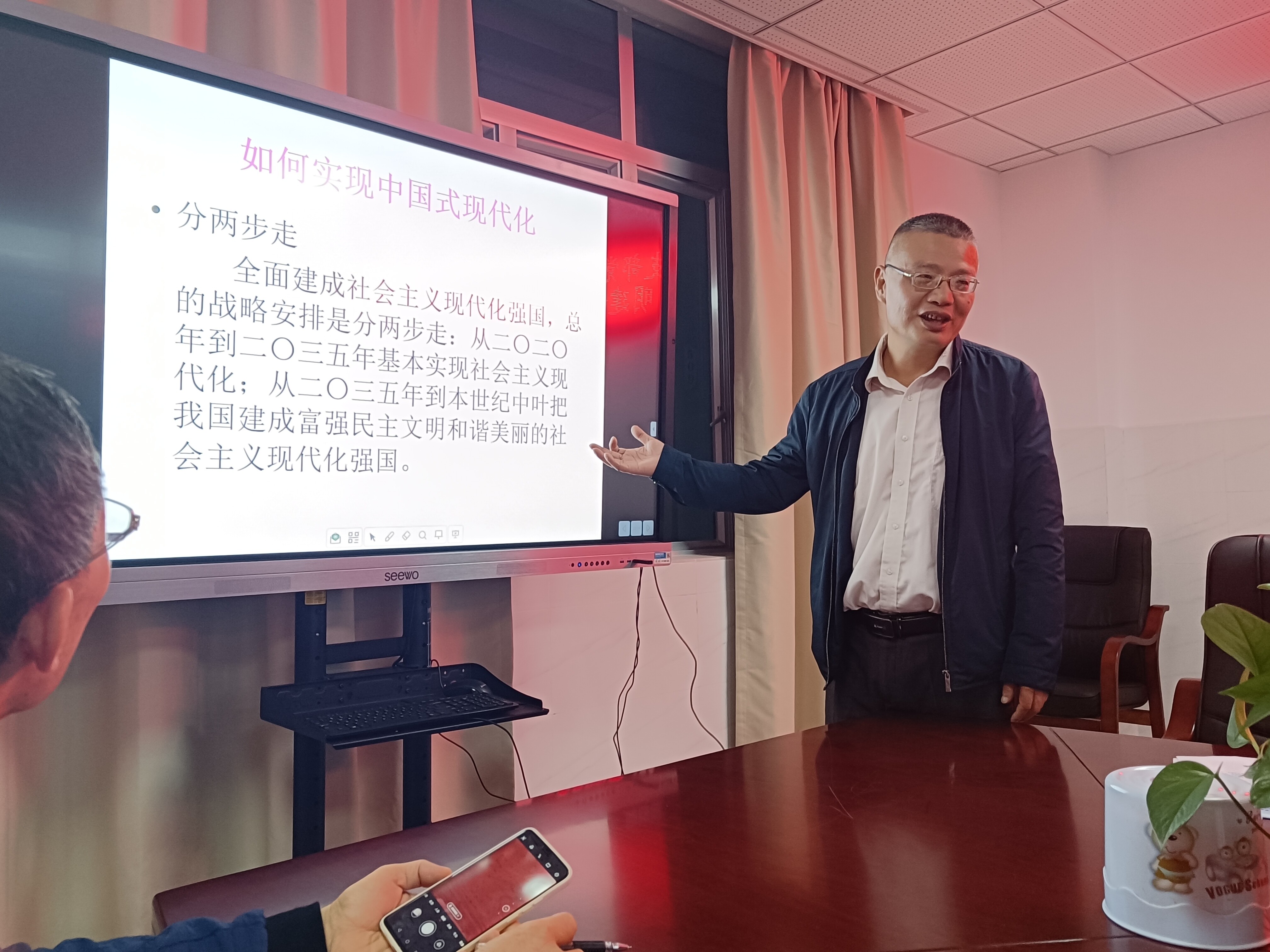 張勤為全體黨員詳細解讀黨的二十大報告。首先讓黨員明確黨的二十大的主題,理解近十年來對黨和人民事業具有重大現實意義和深遠歷史意義的三件大事,接著深入剖析黨的二十大的中心任務:中國共產黨團結帶領全國各族人民全面建成社會主義現代化強國、實現第二個百年奮斗目標,以中國式現代化全面推進中華民族偉大復興。
