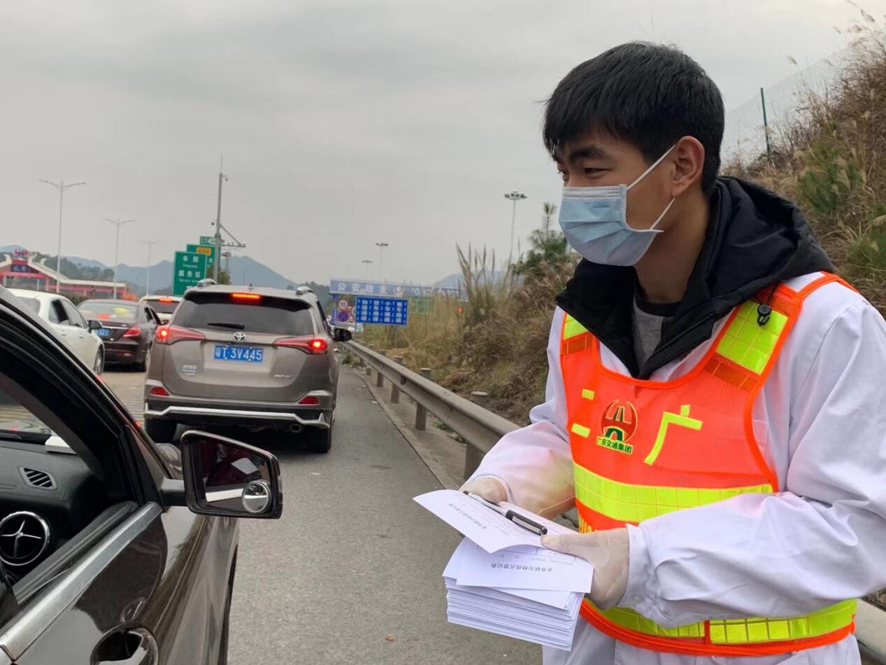 成海斌老師逐個登記過往車乘人員信息