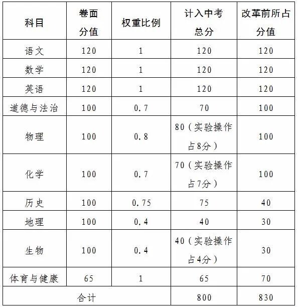 根據《廣東省教育廳關于進一步推進高中階段學校考試招生制度改革的實施意見》(粵教考〔2017〕15號)關于實行“全科開考”的要求,清遠市初中學業水平考試科目涵蓋國家《義務教育課程設置實驗方案》(7~9年級,以下簡稱《課程方案》)規定的全部科目,包括語文、數學、英語、物理(含實驗操作)、化學(含實驗操作)、生物(含實驗操作)、道德與法治、歷史、地理、體育與健康、音樂、美術、信息技術共13個科目。物理、化學和生物科目增設實驗操作考試。其中語文、數學、英語、物理(含實驗操作)、化學(含實驗操作)、生物(含實驗操作)、道德與法治、歷史、地理、體育與健康等10個科目作為中考計分科目,音樂、美術、信息技術等3科作為參考科目。