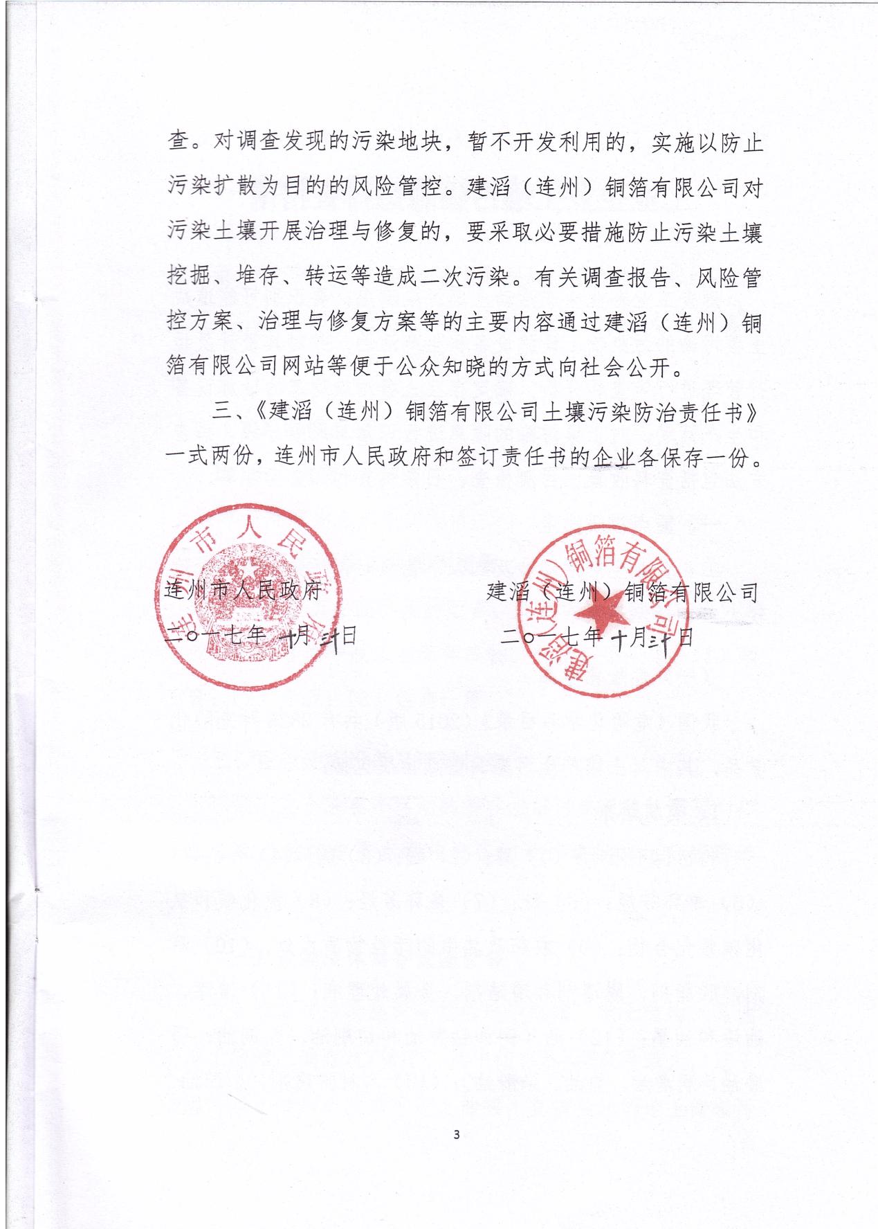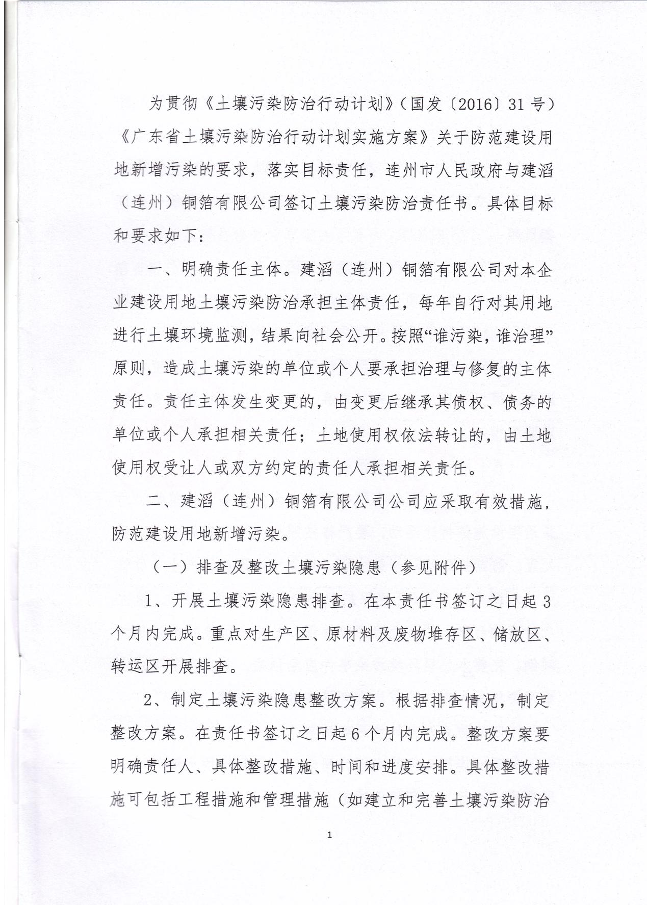 建滔(連州)銅箔有限公司土壤污染防治責任書