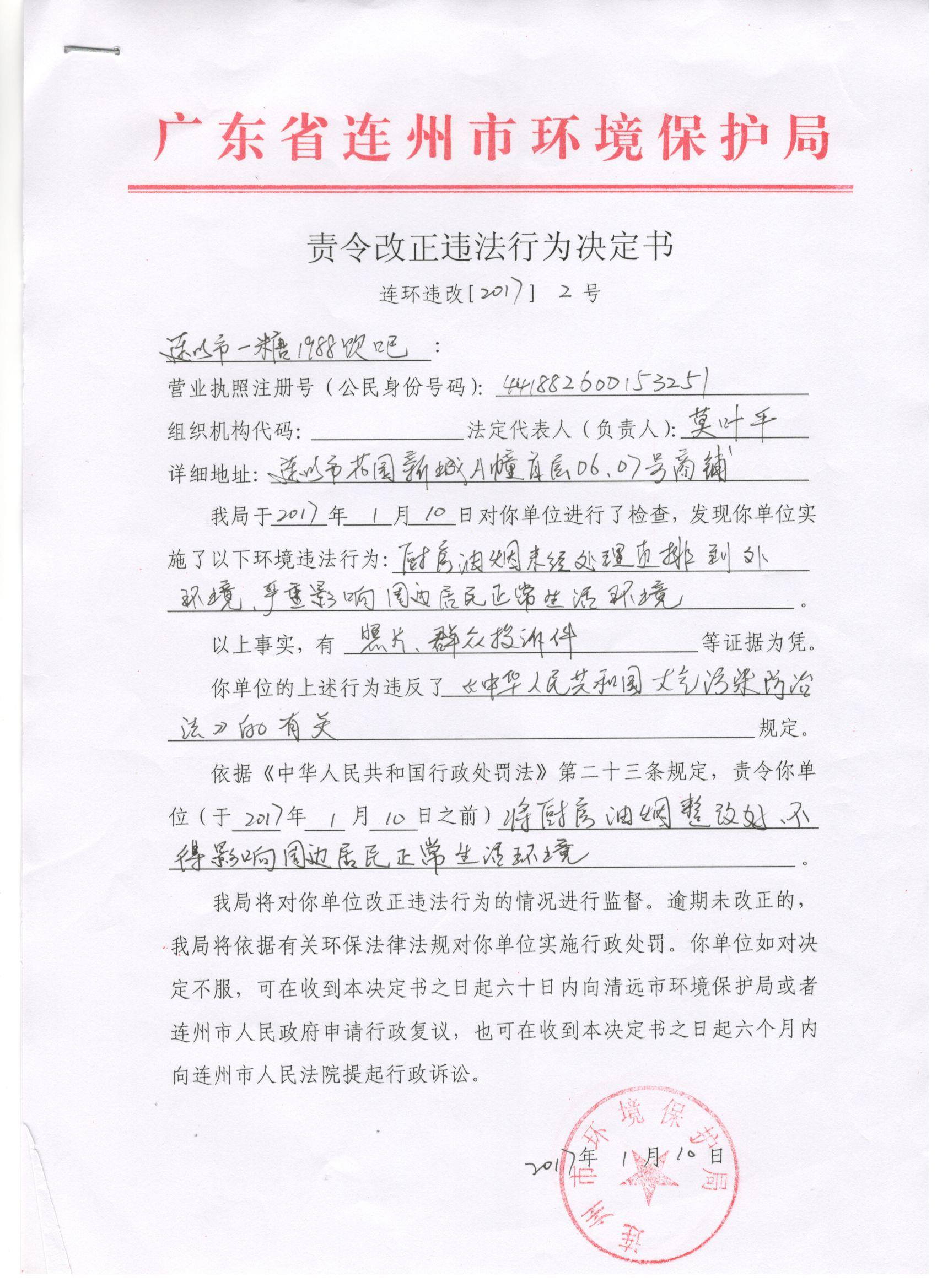 連環(huán)違改字[2017]2號
