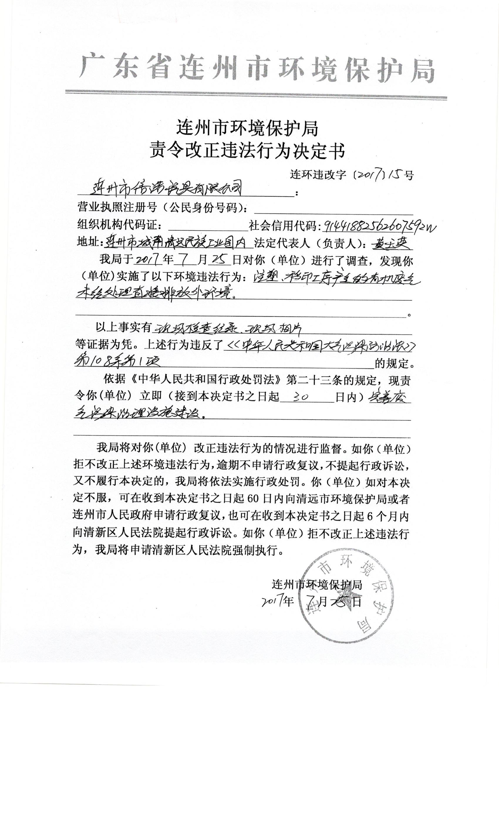連環違改字[2017]15號
