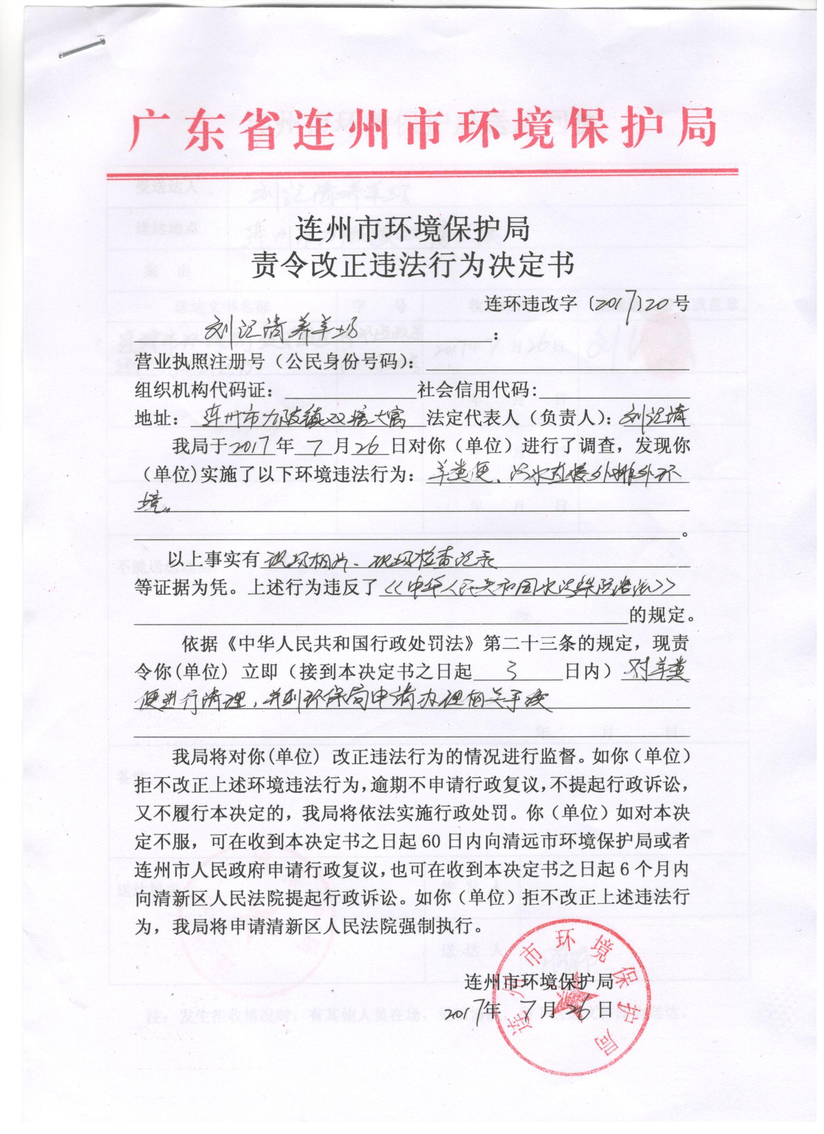 連環違改字[2017]20號