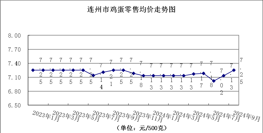 蛋類雞蛋平均零售價格為7.25/500克,環(huán)比升1.68%。鴨蛋平均零售價格為8.85/500克,環(huán)比升2.55%