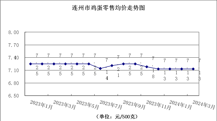 蛋類零售均價為7.90元/500克,環比降0.50%。其中,雞蛋平均零售價格為7.13元/500克,環比不變。鴨蛋平均零售價格為8.68元/500克,環比降0.80%。