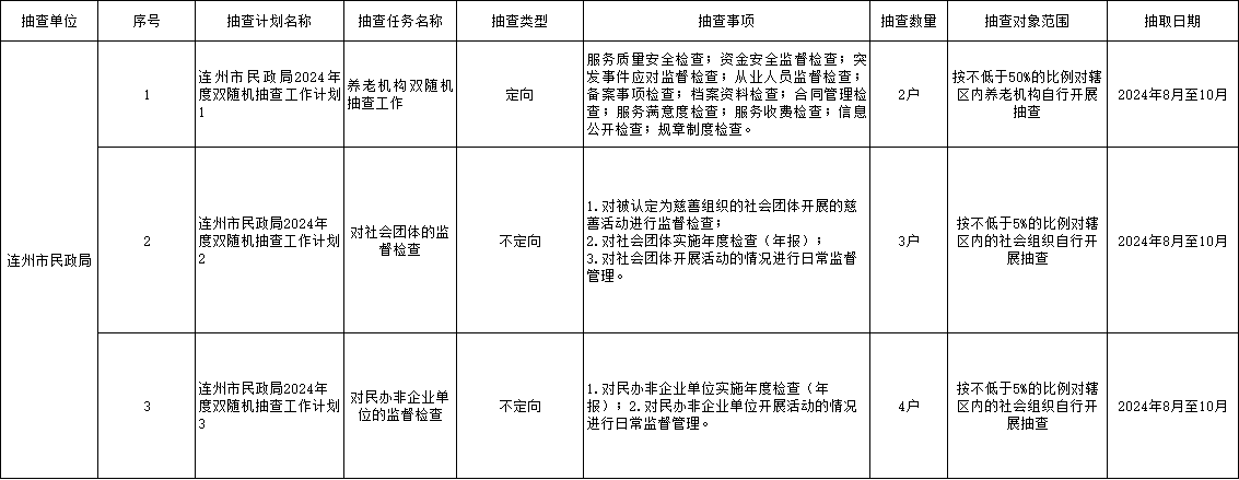 連州市民政局2024年度雙隨機抽查工作計劃