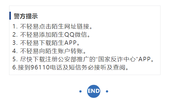 2025年4月23日,連州鎮南門社區一男子家中接到一個自稱某證券公司工作人員的電話按照對方下載隨**APP和國*****構APP,并按照對方指引在國*****構APP進行投資股票,之后發現在APP投資的全部資金無法提現,才發覺自己上當受騙最終該男子被詐騙6萬元人民幣。