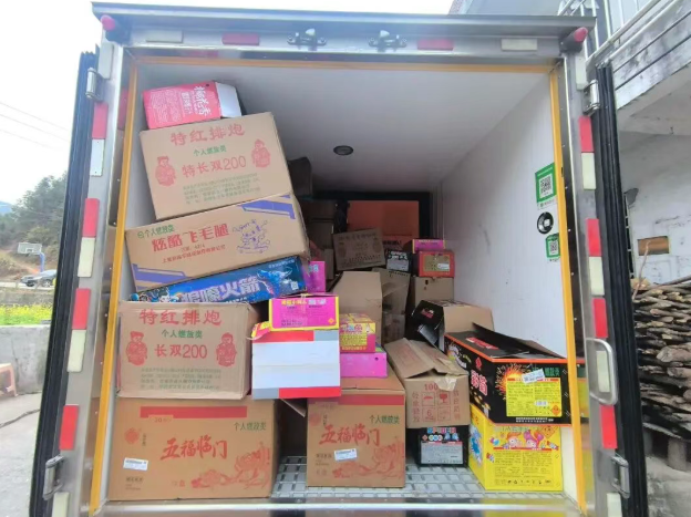 案件一 1月29日17時30分,我局在西岸鎮附近發現并攔截一輛涉嫌無證運輸煙花爆竹的車輛。經現場檢查,該車裝載煙花爆竹50箱,總重量約500公斤,另發現疑似香煙13箱。 經核查,駕駛員譚某某無法提供相關運輸資質,且未采取任何安全防護措施,隨后被依法傳喚至公安機關進行調查。 案件二 同日17時50分許,我局聯合連州市應急管理局(下稱聯合執法組),在連州市連州鎮某號倉庫內查獲一批非法儲存的煙花爆竹,共計34箱,重約230公斤,現場抓獲一名涉嫌非法儲存煙花爆竹的嫌疑人黃某甲。 案件三 當晚19時許,聯合執法組在連州市連州鎮另一倉庫再次查獲一批非法儲存的煙花爆竹,共計26箱,重約200公斤,并現場搜出疑似香煙約10箱。涉嫌非法儲存煙花爆竹的嫌疑人黃某乙被現場抓獲。 經查,三名違法行為人對其非法運輸、存儲煙花爆竹的違法行為均供認不諱。