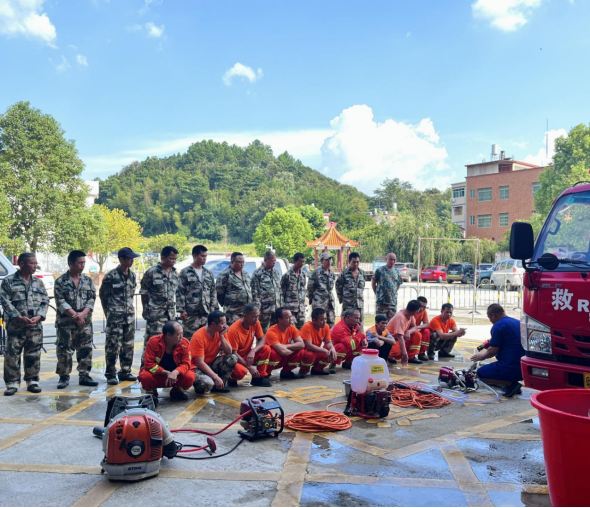 在培訓方面,九陂鎮組織鎮專職、半專職消防隊員及村級護林員共計42人,在鎮119消防隊中心接受了為期一周的“以水滅火”技能培訓。培訓期間,市應急管理局干部親自上陣,對隊員們進行了水槍操控、隊員協同等實訓項目的指導,有效提升了隊員們的防滅火技能。