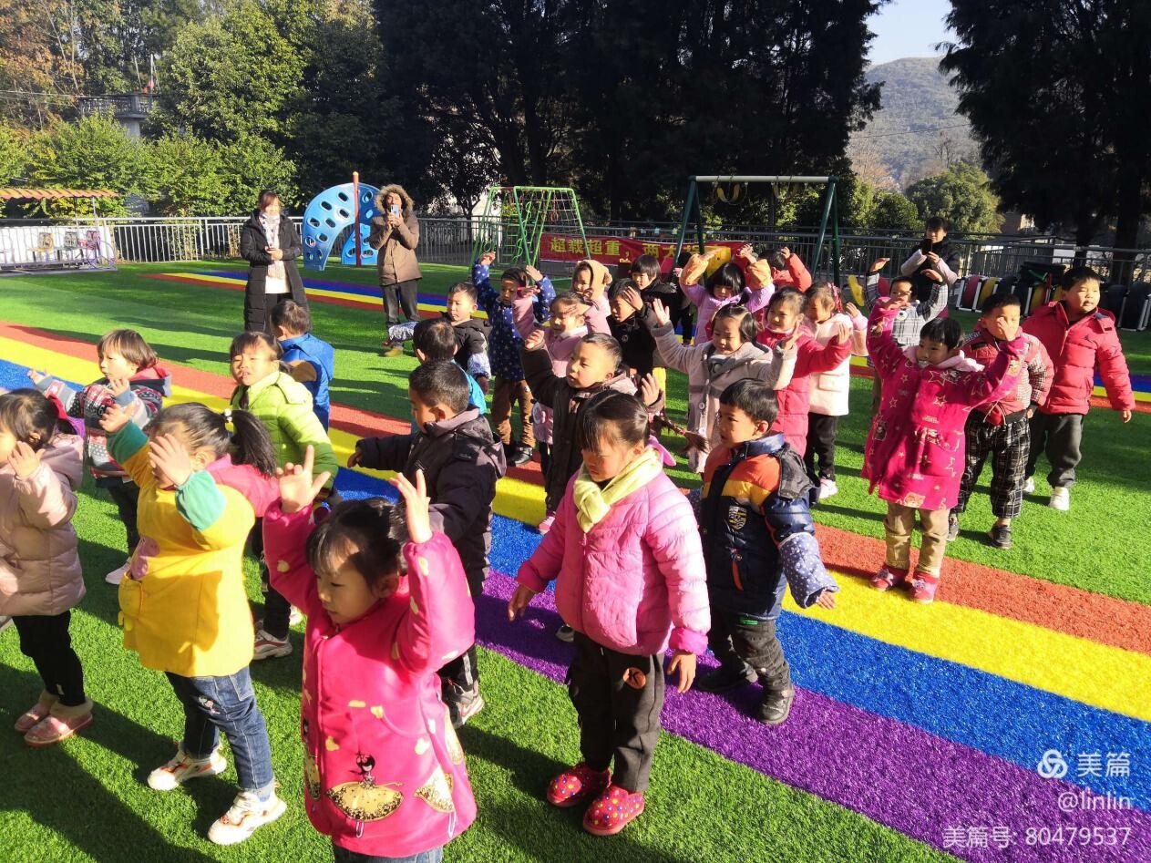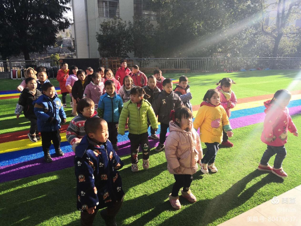 今天陽光明媚,享受著清晨的第一縷陽光,我們快樂做早操。