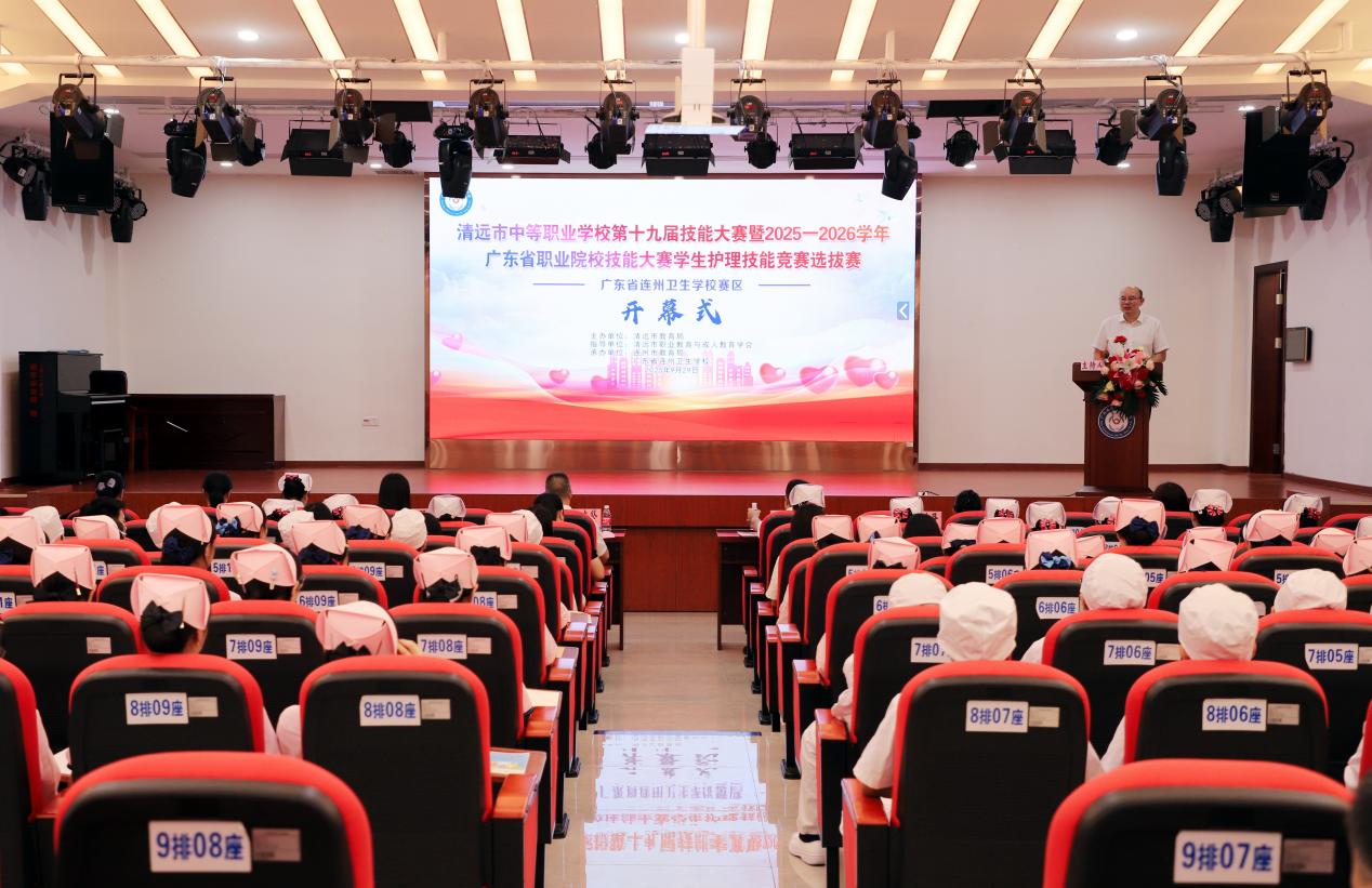 2025年9月28日-29日,清遠(yuǎn)市中等職業(yè)學(xué)校第十九屆技能大賽暨廣東省職業(yè)院校技能大賽護(hù)理項(xiàng)目選拔賽在廣東省連州衛(wèi)生學(xué)校順利舉行。29日上午9:30在廣東省連州衛(wèi)生學(xué)校學(xué)術(shù)報(bào)告廳隆重舉行了開幕式。連州市教育局黨組成員、副局長張志堅(jiān)、廣東省連州衛(wèi)生學(xué)校的有關(guān)領(lǐng)導(dǎo)出席了開幕式。參加開幕式的還有本次技能競賽的裁判、參賽選手和指導(dǎo)老師以及廣東省連州衛(wèi)生學(xué)校的部分師生代表等。開幕式由廣東省連州衛(wèi)生學(xué)校陳冬冬副校長主持。